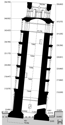 La torre è si sviluppa su 35 piani. Fino al 12esimo piano il grattacielo si innalza in verticale, ma da quel livello in poi si piega e si «storta» di circa 18 gradi verso ovest, con uno sfasamento progressivo da 30 a 140 cm, che dà luogo appunto all'impressionante inclinazione che si percepisce dall'esterno della torre.